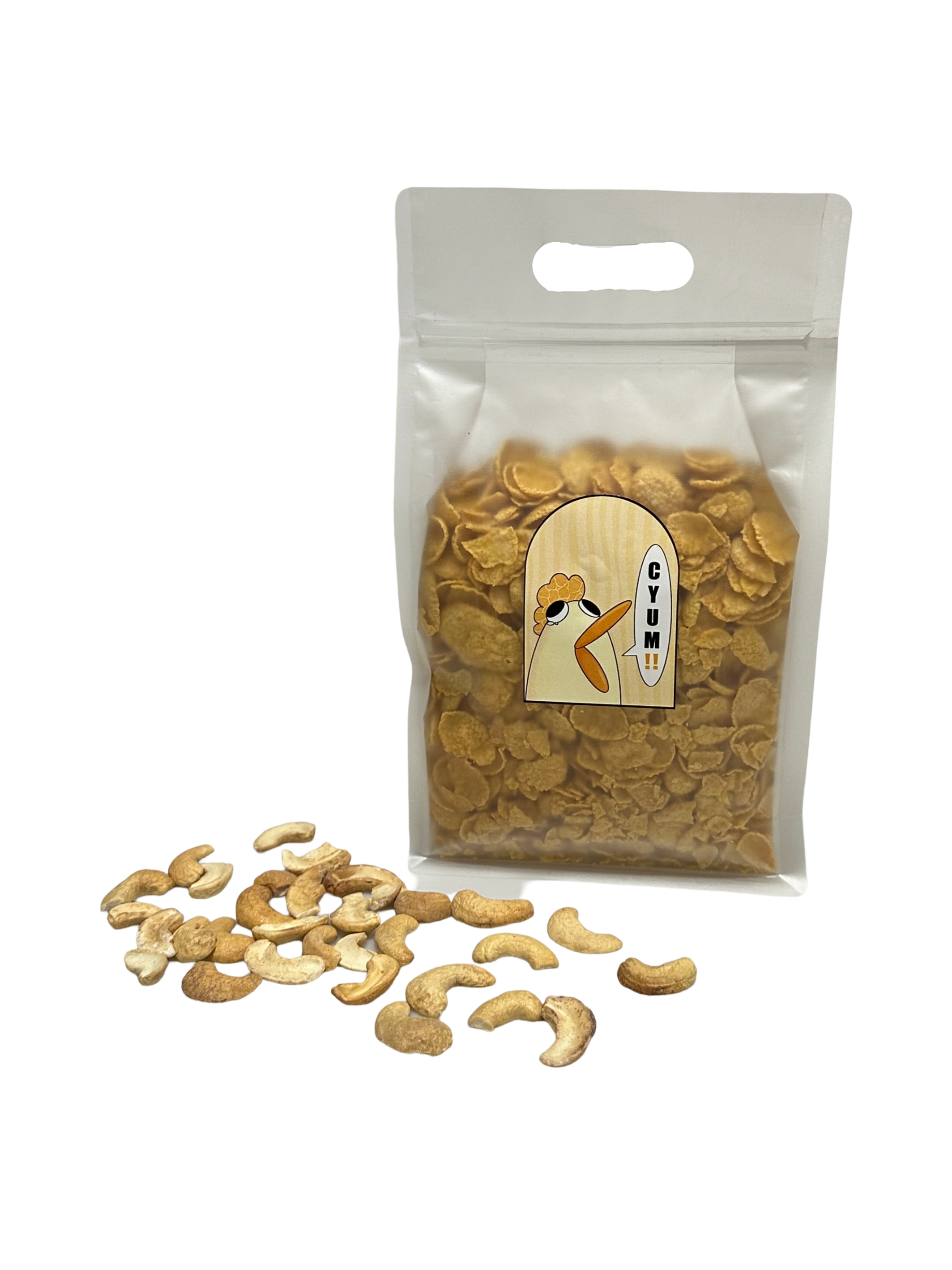Cyum Caramel Cornflakes with cashew nuts aim to enter the breakfast cereal with a unique product that Combine the convenience of ready to eat cornflakes with the rich taste of caramel.